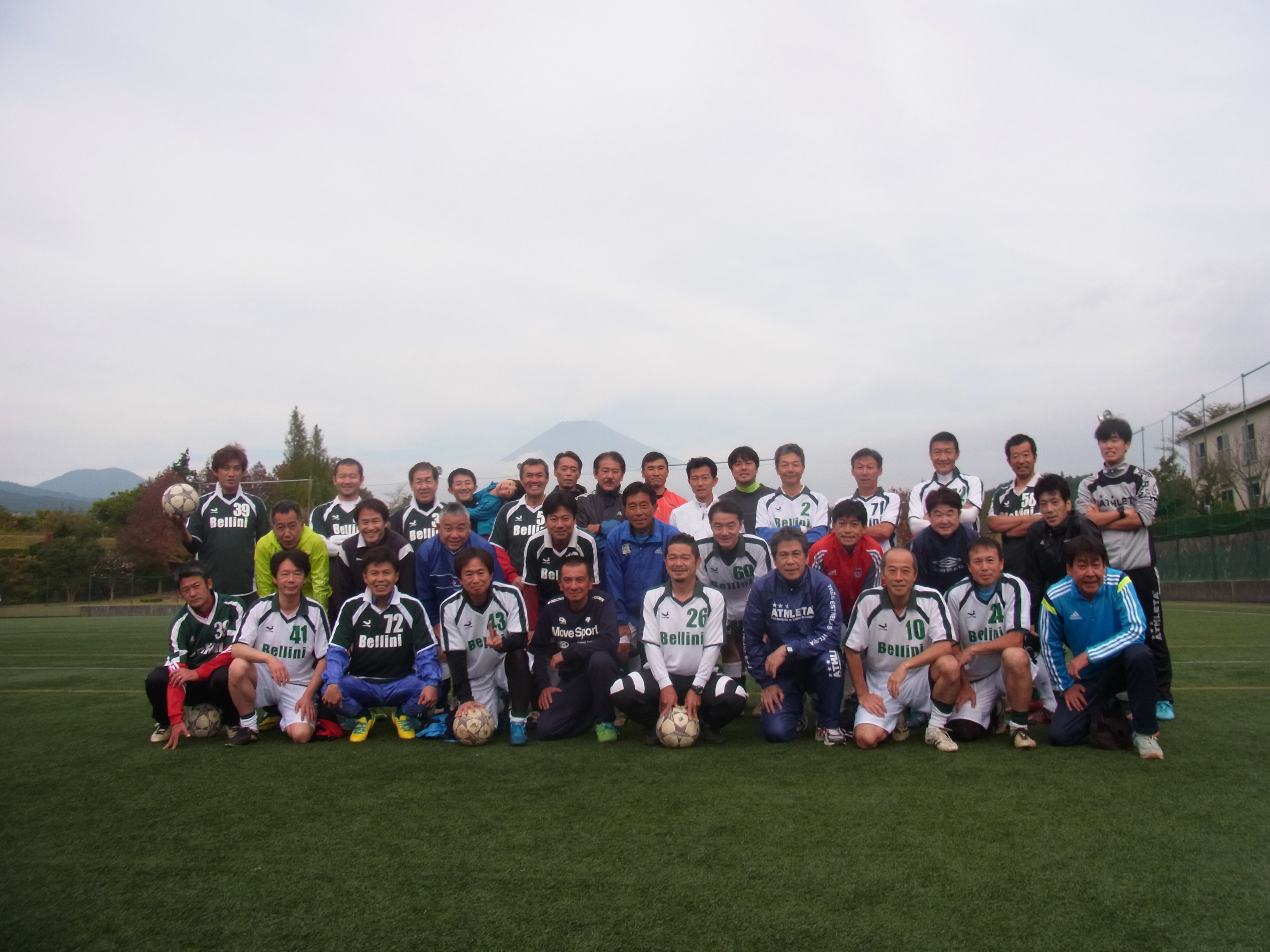 秋晴れのもと、富士山を眺めながら、おっさんたちがボール蹴りにうつつを抜かし、